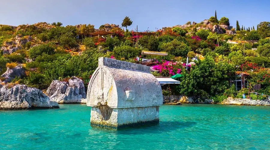 Today’s journey begins with a visit to the mesmerising Sunken City of Kekova, an ancient series of ruins submerged by an earthquake in the 2nd century AD. As a UNESCO World Heritage Site, the Sunken City offers a fascinating glimpse into history while we cruise along its edges. Though swimming and snorkelling aren’t permitted, the view from the gulet provides a captivating experience of this archaeological marvel.