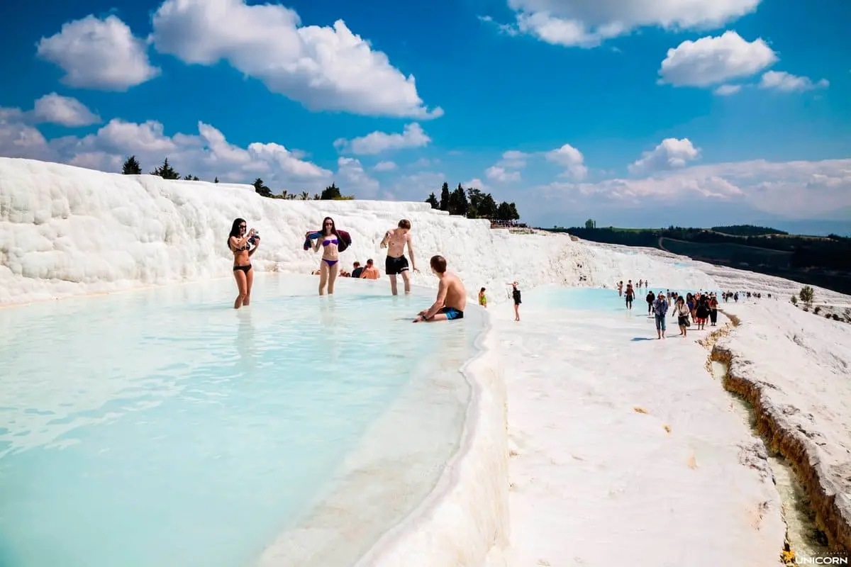 - Pamukkale: The highlight of the day will be the famous travertines of Pamukkale, a natural wonder with terraces of dazzling white mineral-rich pools. Take in the breathtaking views and enjoy the unique experience of walking on the cotton-like formations.