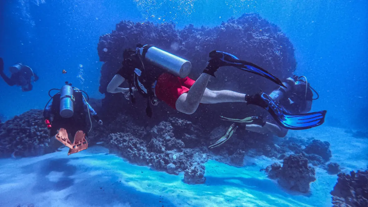 - ✅ All necessary scuba diving equipment (mask, fins, wetsuit, regulator, BCD, tank, weights)