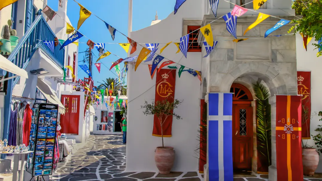 There, you'll board a ferry to the renowned island of Mykonos, renowned for its picturesque views during the ideal time of day for sun-decking and gazing at the Aegean's deep blue waters.