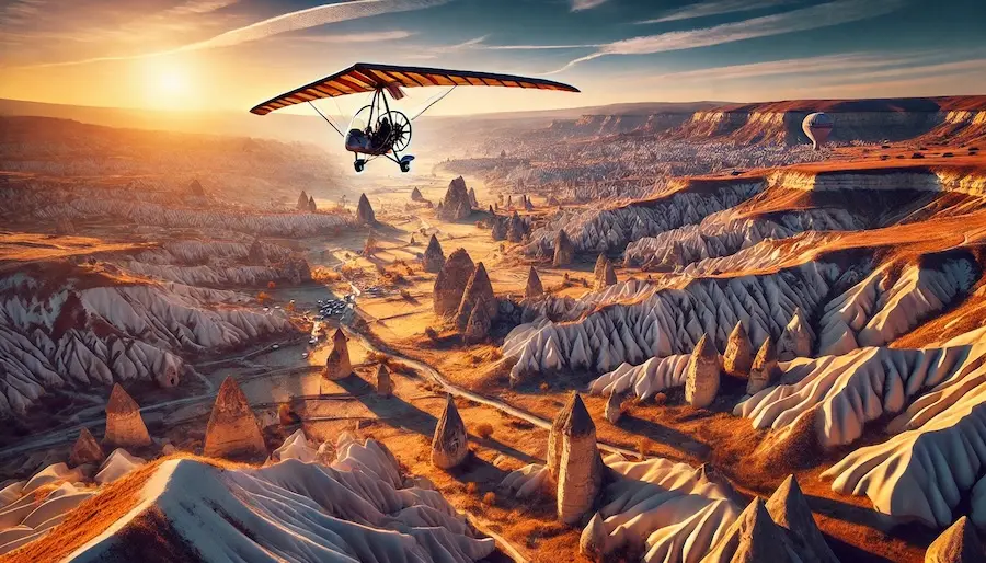 Soar above the breathtaking landscapes of Cappadocia in a thrilling microlight flight that promises an unforgettable adventure.