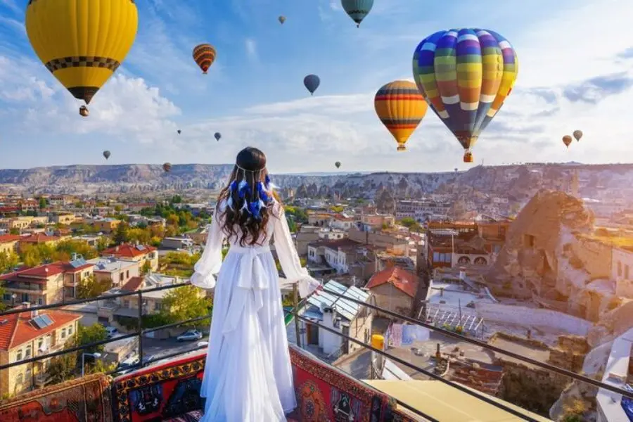 A: We recommend wearing comfortable but stylish clothing that reflects your personality. Flowing dresses, neutral tones, or traditional attire work well against Cappadocia's unique landscapes. Depending on the weather, you may also need a hat, sunglasses, or a jacket.