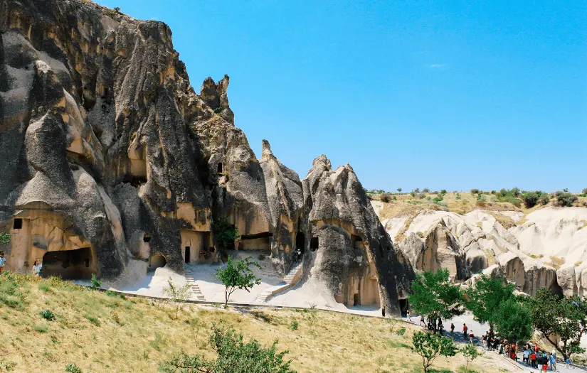 Goreme Historical National Park is a unique natural and cultural heritage site located in the heart of Cappadocia and listed on the UNESCO World Heritage List. Formed by thousands of years of volcanic activity and erosion, fairy chimneys, valleys, and rock formations have given Goreme a unique landscape. In addition to this natural beauty, the numerous churches, monasteries, and underground cities in the region represent an important cultural heritage of early Christianity. Especially the churches in the Goreme Open-Air Museum attract attention with their wall paintings and frescoes.