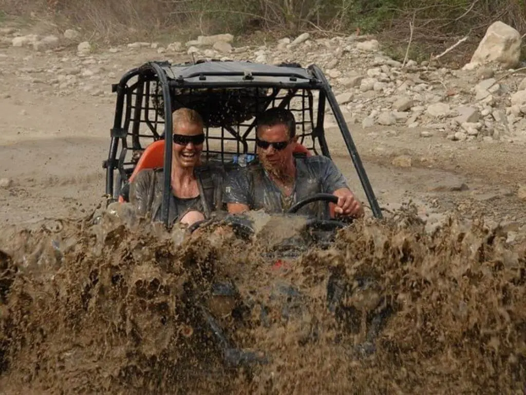 1-hour buggy ride through rocky paths, muddy roads, and water splashes