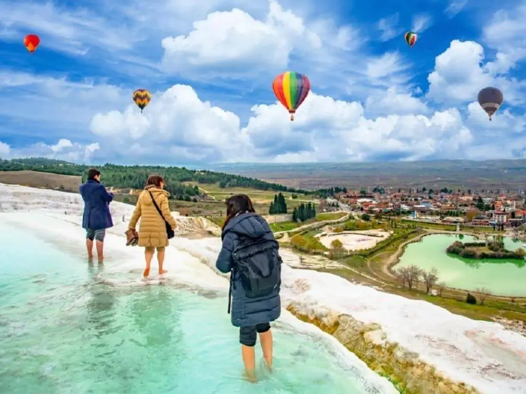 Pamukkale Thermal Pools: Explore the surreal white travertine terraces and soak in warm waters.
