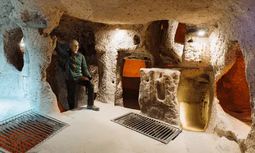 - Underground City: Cappadocia is home to 36 underground cities, built by early Christians to escape persecution. We will visit the most extensive and well-known of these subterranean settlements. Divided into eight levels, visitors can explore sections of the underground city, including ancient wineries, kitchens, and living quarters, offering a fascinating glimpse into the past.