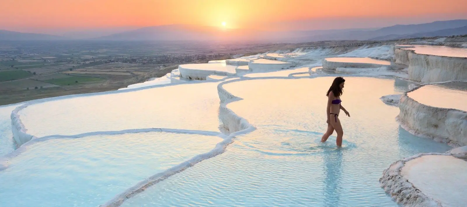 - 10:00 AM: Arrive at Pamukkale and start your guided tour of the site. Explore the terraces, hot springs, and ancient ruins of the city of Hierapolis.