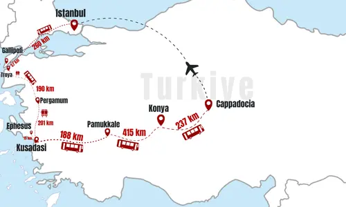CappadociaEphesusIstanbulPamukkaleKonyaGallipoliTroyPergamonTurkey