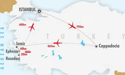 Crafted for adventurers seeking to delve into Turkey's rich history, cultural tapestry, and breathtaking landscapes, this tour offers the added convenience of flights to maximize every moment of their journey.