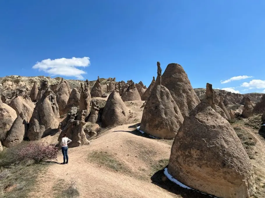 - Devrent Valley: A short drive takes us to Devrent Valley, renowned for its surreal rock formations that resemble a lunar landscape. The small, pointed fairy chimneys here create an imaginative setting, with some formations resembling animals and mythical creatures.