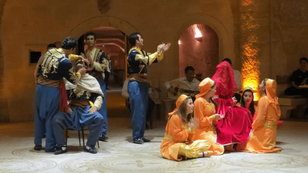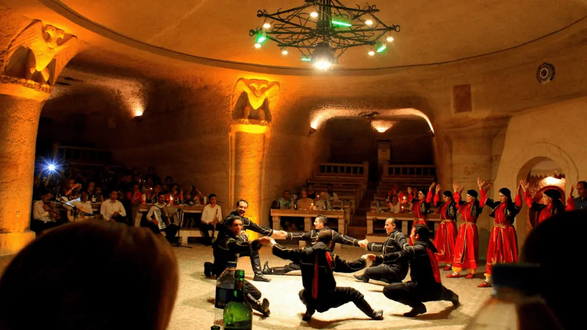 The event usually takes place in a cave restaurant, which adds to the unique ambiance of the night. Guests are welcomed with traditional Turkish appetizers and a selection of local wines. As the night progresses, live music begins, and the belly dancer performers take center stage.